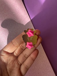 ★ this pin features: screen printing, a giren logo back stamp, and two pink star shaped pin backs.